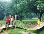 A small playground greeted us by the parking lot at the end of the park's only road. We walked back onto the road to the first entrance in the woods, and soon reached a fork. We opted for the left trail where our kids ran wildly until they were slowed by a steep section with stairs made of running roots. The mature trees looked impressive, the sun could not reach through the thick canopy of leaves. We spotted many small toads. Soon, our little scouts were inspired by strange lean-tos made out of branches. Building our own became a family project for a good half hour. Then back on the trail, we soon reached a picnic shelter. From there, we headed right onto the first little road along the river and discovered a great picnic spot. While the trail is a bit confusing, there's no fear of getting lost! Simply stand still and the sounds of traffic on Islington Avenue will remind you this oasis sits in the middle of civilization.