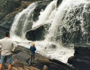 Kids just love exploring natural wonders with nooks and crannies. High Falls is filled with these. All around the park, the ground is covered with big slabs of rock. Vegetation has tried to grow over and hold on to as much as it could with the help of really long running roots. First, we tried to get as close as possible to the thundering High Falls. The powerful white body of water was fascinating to my then 5-year-old little monkey. In some spots, we had to jump more than one metre down onto lower rocks, to get closer. We then explored the surrounding stream running into the woods. I know my son felt like a true pioneer, walking stick in hand.