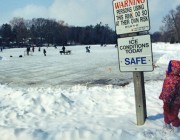 The whole pond is cleared and managed by the Town of Richmond Hill. A sign indicates the ice condition. There's an outdoor place to put on your skates and leave your boots, and a small playground. When we visited, there even were some cages with geese and swans. A paved trail runs along the pond into a small forest. Public parking lot and washrooms are located across the street. The best time to skate on this pond would be during Richmond Hills' Winter Carnival on the first weekend of February. It has been going on for over 40 years.